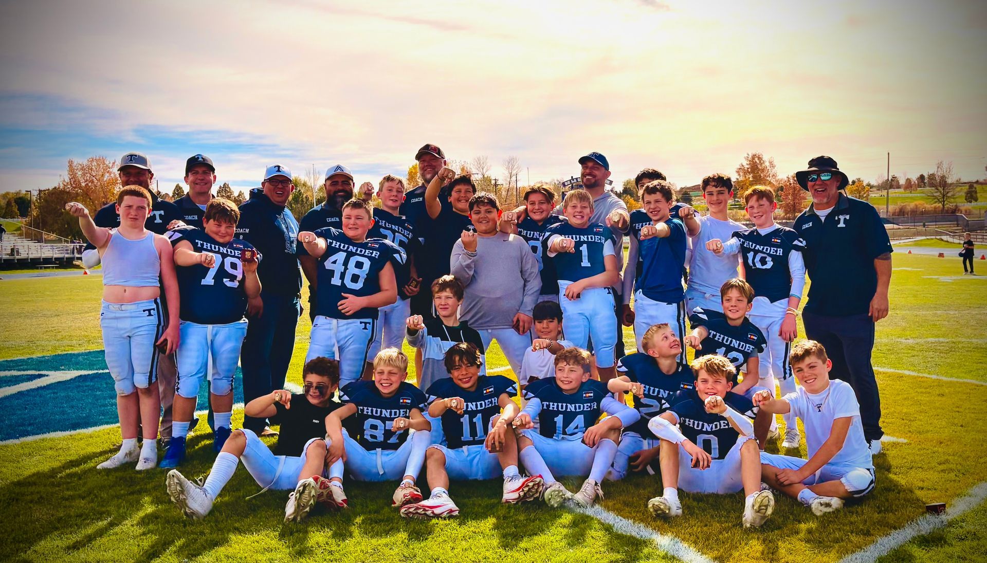 Thunder Football provides a competitive and exciting tackle football program in the Littleton area for all levels of talent from ages 6 to 14. We are focused on teaching teamwork, sportsmanship, and leadership in a physical education program that is fun and promotes a lifelong love of the game of football! The Thunder are one of nine-member clubs of the Arapahoe Youth League (AYL) and serve the youth in Littleton.
